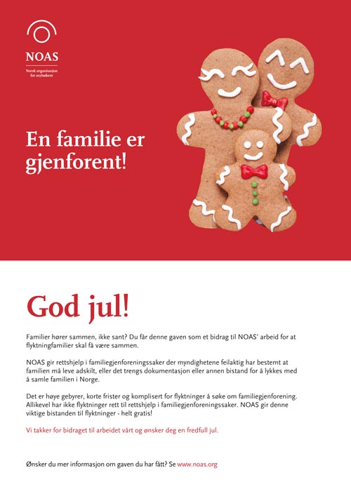 NOAS bistår flyktningfamilier i søknadsprosessen og gir rettshjelp når vi ser feil i vedtakene eller urimelige avslag. I tillegg jobber vi for at familiegjenforening for flyktninger skal bli billigere, raskere og enklere.