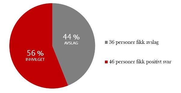 Siden 2015 har 104 saker blitt henvist til rettslig prøvning gjennom NOAS’ Domstolsprosjekt. I 82 av sakene har det kommet endelig avgjørelse, hvor 46 saker har fått endret resultat i klientens favør. Siden oppstarten av prosjektet har vi altså vunnet frem i 56 prosent av sakene.